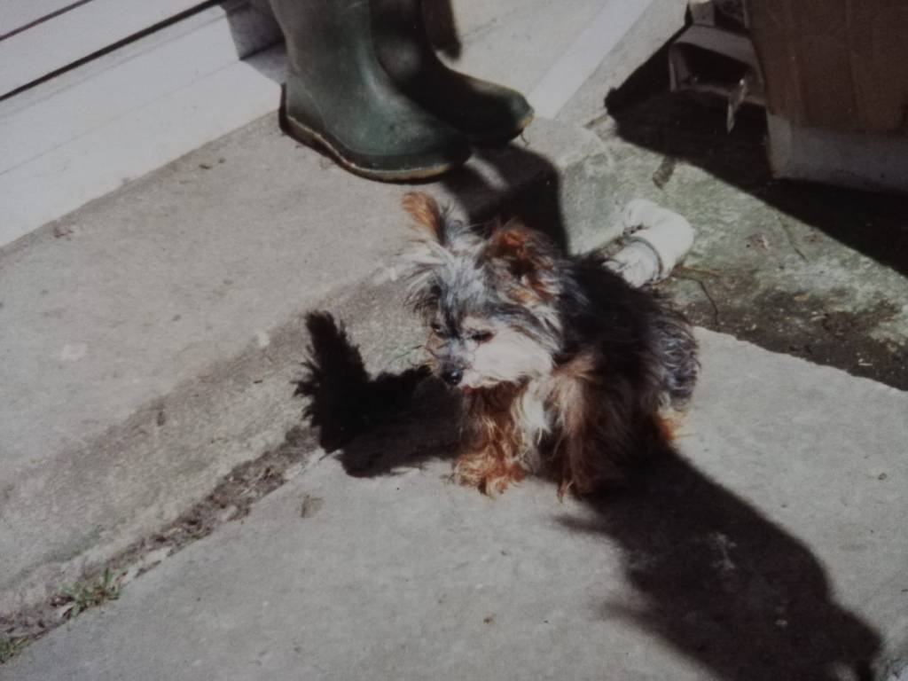 Carrie – When I was 15 my sister and I were out walking when we spotted a tiny dog ahead, one so small we assumed it to be a puppy. On closer inspection we discovered a tiny Yorkshire Terrier in a horrific condition. It was an alley on another estate to ours, one we did not usually cut down, so I always felt like fate was at play that afternoon. The little dog was holding up a twisted and useless back leg. Her fur was matted and greasy. Her ears were bald and covered in black muck. She seemed to have no teeth, and a protruding tongue due to lack of a lower jaw. She had a lower lip, but it just sort of hung. I immediately picked her up and declared that we were saving her. No one who had allowed a dog to get into that state deserved it back. We did the right thing though and took her straight to the police station. They filed a report and told us no one had reported her missing so we could keep her if we wanted. We were overjoyed! We then took her to the vets who told us she was in fact elderly, not a puppy as we had assumed. Her back leg had been broken at some point and left to heal on its own. Her teeth had nearly all gone which was why the lip hung down. We took her home and of course Mum said we could keep her! After a few washes, some good food, and lots of TLC she blossomed into a beautiful little girl with soft, silky fur. I loved her so much. She would walk about on all fours but if she wanted to go faster she would tuck the twisted leg up under her belly and run on three. I called her Carrie and she was mine. She trotted into my bedroom on the first night, slept on my pillow and that was that. I finally had my own dog! I took her everywhere with me, usually popping her into an old army satchel with her head poking out because she couldn’t manage long distances. She came on sleepovers with me. Me and my friend even snuck her into shops so we wouldn’t have to tie her up outside. I only had her for 10 months. She died suddenly when I was out one day and we never knew what happened or why. I was devastated. It was my first experience at losing a dog, a best friend and I was gutted and could not stop crying for months.