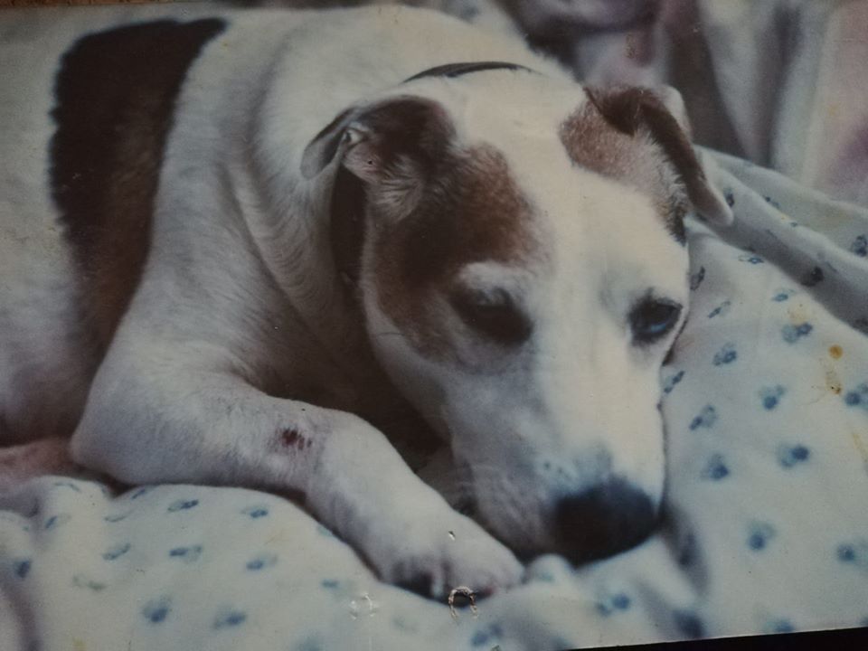 Robbie – Luckily for me, the loss of Carrie was made easier by the presence of Robbie. A few months before Carrie died my mum’s brother’s wife asked if we could rehome another Jack Russel. Her niece had a new baby, post-natal depression and the 3 year old dog was not getting any attention. Mum said yes and Robbie came to stay. He was originally called Archie but I changed it to Robbie. No idea why, he just looked like one. He was a tall JRT, looking back now, he probably had some Staffy in him too. He was overweight but I soon walked that off him and yes, for the second time, a dog chose me. He was mine from the first moment he came into our house. He ran around the house chasing all the cats and pulling fur from their bums. He soon got used to them but getting on with Gyp and Joey was another matter. They fought and they fought nasty. I don’t know how we got through it but somehow we did. It never crossed any of our minds to give up on him or pass him on. He was never exactly pals with the other dogs, but the fighting did stop and he was always fine with Carrie. When she died I was so grateful to have him. He was a bundle of mad cheeky energy and very smart. I loved walking him around the estate and felt like I finally had a proper dog. Robbie even came to University with me and moved in with me and my husband who was then my boyfriend, into our first home. I still had him when my first child was born but when I was pregnant with my second he suffered a stroke out of the blue at thirteen years old. We rushed him to the vets and kept him going for a few weeks after that but he was never the same. His head was tilted and he would turn in circles. He didn’t want to go for walks anymore and he started to get a bit aggressive.. I had to make the decision to have him put to sleep and it was horrendous. I still miss him now. He was such a character.