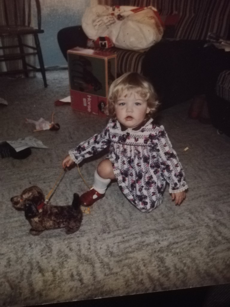 First let me just explain something about me as a child. I was a dog lover from a very early age. I was totally obsessed by dogs. As a child, I begged and begged my parents for a dog but the answer was always no. We had a cat and that was all we were allowed. She was beautiful but very timid. Not really best buddy material. I had to console myself with my growing collection of toy dogs. There is a picture of me as a toddler playing with one of those wooden dogs on leads. I remember that I absolutely loved that thing. My Nan had one of those classic dogs on wheels that you ride on at her house. It went around the grandkids for years and years. Must have been an antique. I adored it and spend many hours riding up and down the path in the garden on that tatty old thing. Every birthday and Christmas as a child I asked for a new stuffed dog to cuddle. They all had names and their own little collars and leads I used to drag them around on. Remember Pound Puppies? I loved those! I was the same with TV. Littlest Hobo? Lassie? Benjie? I loved them all. I loved all animals and once I was old enough to read and write I devoured animal stories and then wrote my own. The first little book I ever wrote and finished was about some abandoned dogs. I still have it! I had a den behind my bed dedicated to dogs. Posters and stickers and books. A set of dog breed Top Trumps! I was a very strange kid.