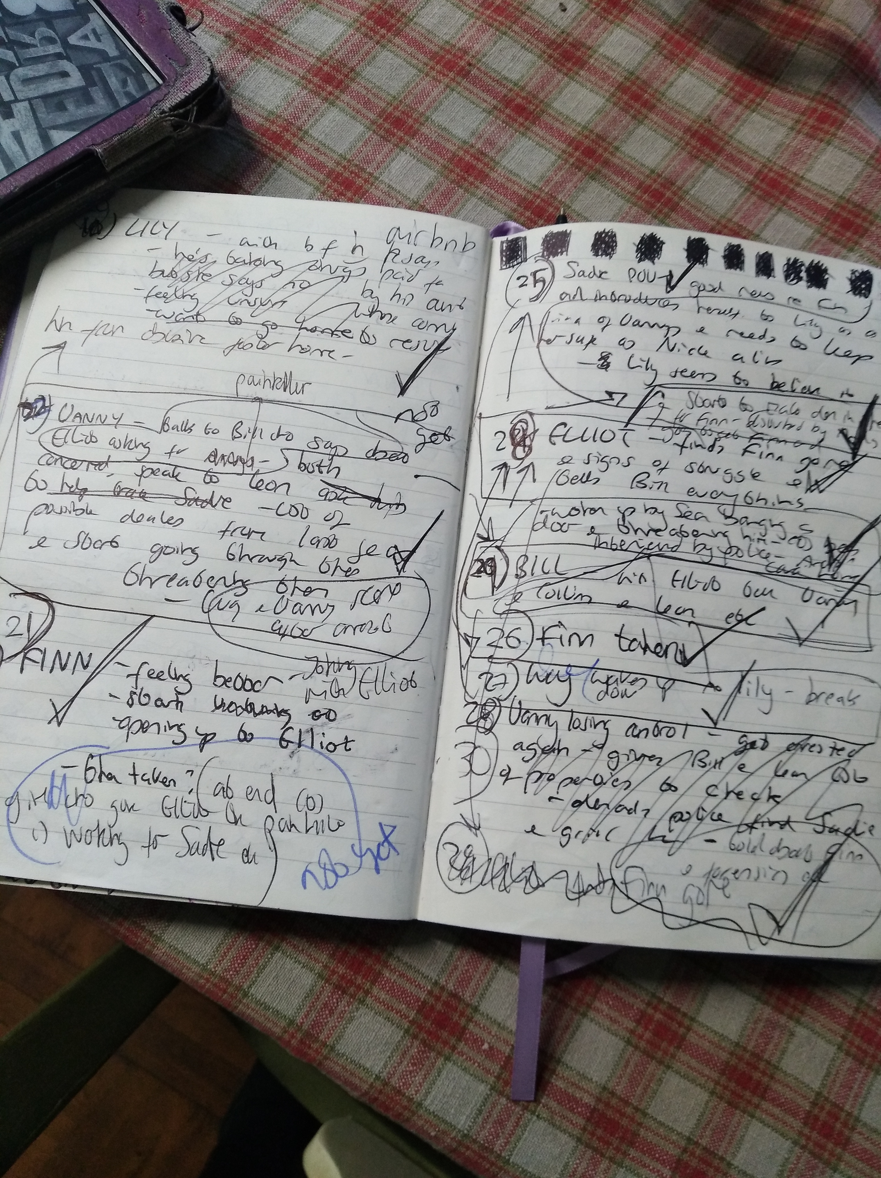 Step 4: Start writing the book on your laptop. I prefer Word for many reasons. The notebook of chaos runs alongside the writing. The notebook is indeed now very chaotic! New chapters have pushed themselves in between the original chapter outlines, and I end up with circles and crosses and arrows all over the place. No one else would be able to make sense of it, but I can, and that’s all that matters. Why still use the notebook? Why use one at all? I’ve already mentioned my own reasons for writing a book this way but there has also been a lot of research lately that concludes that all our brain is active when we handwrite, whereas only part of our brain is active when writing on screens. In other words, writing by hand makes us think more! I often wonder if my books would be different if I planned, plotted, outlined and wrote all of it on the screen.